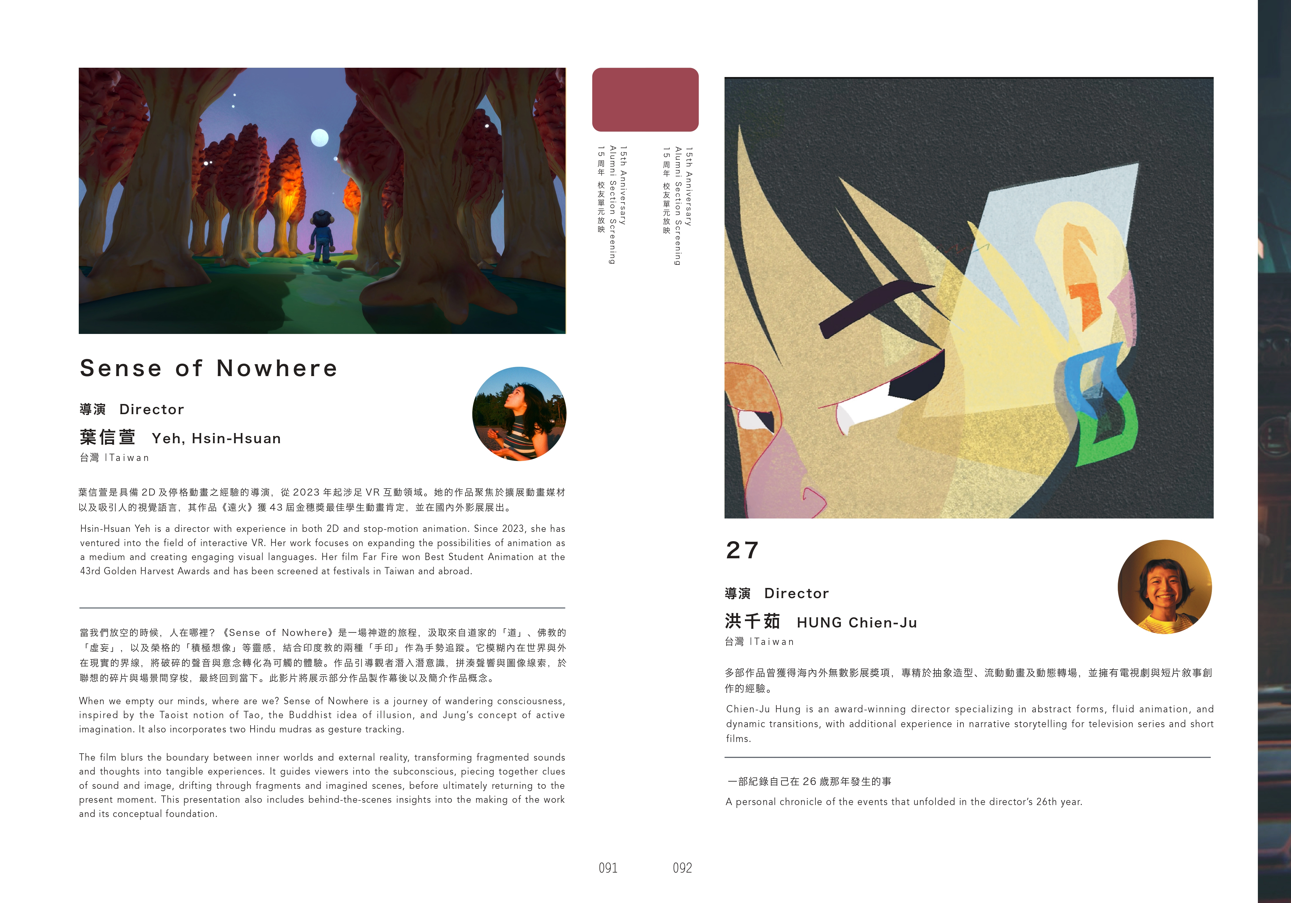 本次北藝大十五周年校友講座邀請四位動畫專業的校友回到校園,分享他們從學生到業界的成長經驗。透過回顧職涯與學生時期的經驗,回應觀眾對未來方向的疑問。